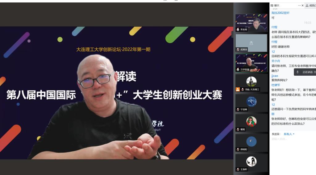 张强以“互联网+”大赛赛事组织和培训辅导方面资深专家的视角,从国家战略需求和高等教育发展方向出发,结合双创教育升级版政策和创造性人才培养计划、学生就业能力提升,人才培养模式改革、学科发展需求等多个方面解读了“互联网+”大赛在高等教育教学改革中的重要意义,对第八届大赛的总体安排、赛道组别设置、赛程赛制、参赛要求等关键信息进行了深度解读,对参赛过程中指导教师职责、学生团队构成、资源配置、项目培训打磨机制等给出了针对性意见。讲座后,张强与参会师生进行了线上互动,为备赛工作答疑解惑。