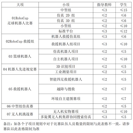各项目每支队伍报名人数限制:
