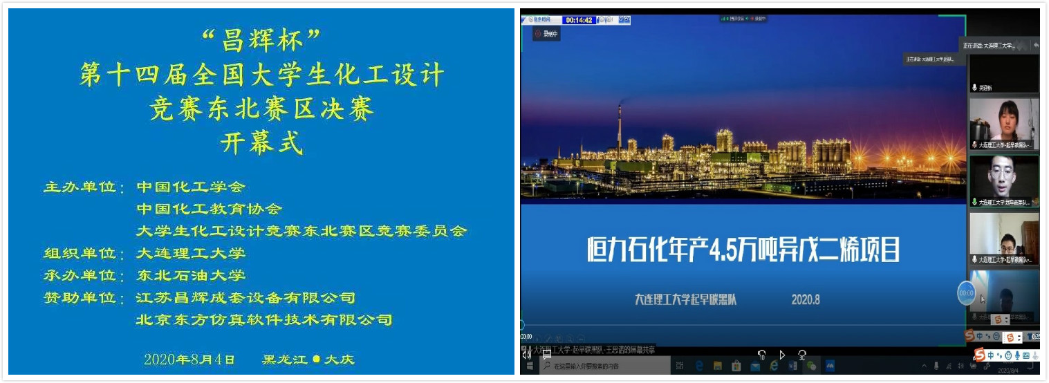 8月1-4日 “昌辉杯”第十四届全国大学生化工设计竞赛东北赛区决赛由东北石油大学承办,通过网络线上举行。我校化工学院“起早碳黑”团队(学生:赵前程、徐吉、唐坤、孙陆旸、王思诺,指导教师:何德民、关珺、周颖)在来自东北地区34所高校的111支代表队的激烈角逐中脱颖而出,以网评、初赛、决赛第一名的成绩获得晋级全国总决赛的资格。