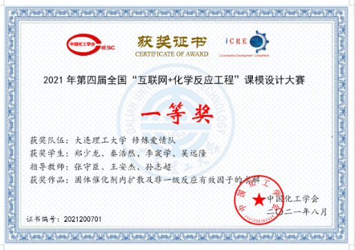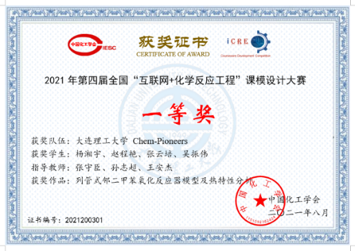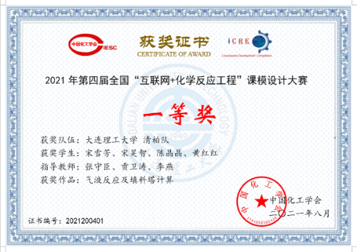 2021年8月24日,由中国化工学会主办,必赢3003am承办的第四届全国“互联网+化学反应工程”课模设计大赛落下帷幕。本届比赛共有85所高校的345支队伍报名参赛。114份优秀作品脱颖而出,其中包括一等奖17名,二等奖33名,三等奖57名,鼓励奖7名。我校化工学院学子获得一等奖4项、二等奖2项、三等奖3项,指导教师有张守臣、孙志超、王安杰、贡卫涛、李燕、王立秋、田朋和李琳等;我校获得了最佳组织奖,张守臣、孙志超两位教师获得了优秀指导教师奖。