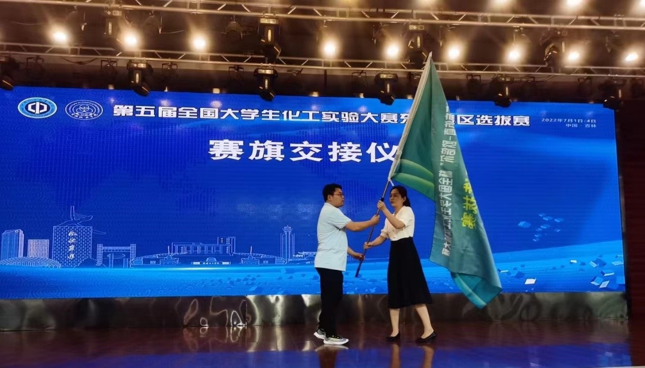 本次竞赛很好地锻炼了学生将化工理论与实践、创新相结合的能力,开拓了学生和老师的视野,有助于培养“新工科”人才,对于提高学生的创新创业能力和团队合作精神等具有重要意义。我校化工学院潘艳秋教授在闭幕式上作大赛情况总结。我校将承办第六届全国大学生化工实验大赛东北赛区选拔赛,化工学院叶俊伟副院长在闭幕式致辞,热烈欢迎东北地区各相关高校2023年相聚我校。闭幕式上还进行了赛旗交接仪式。